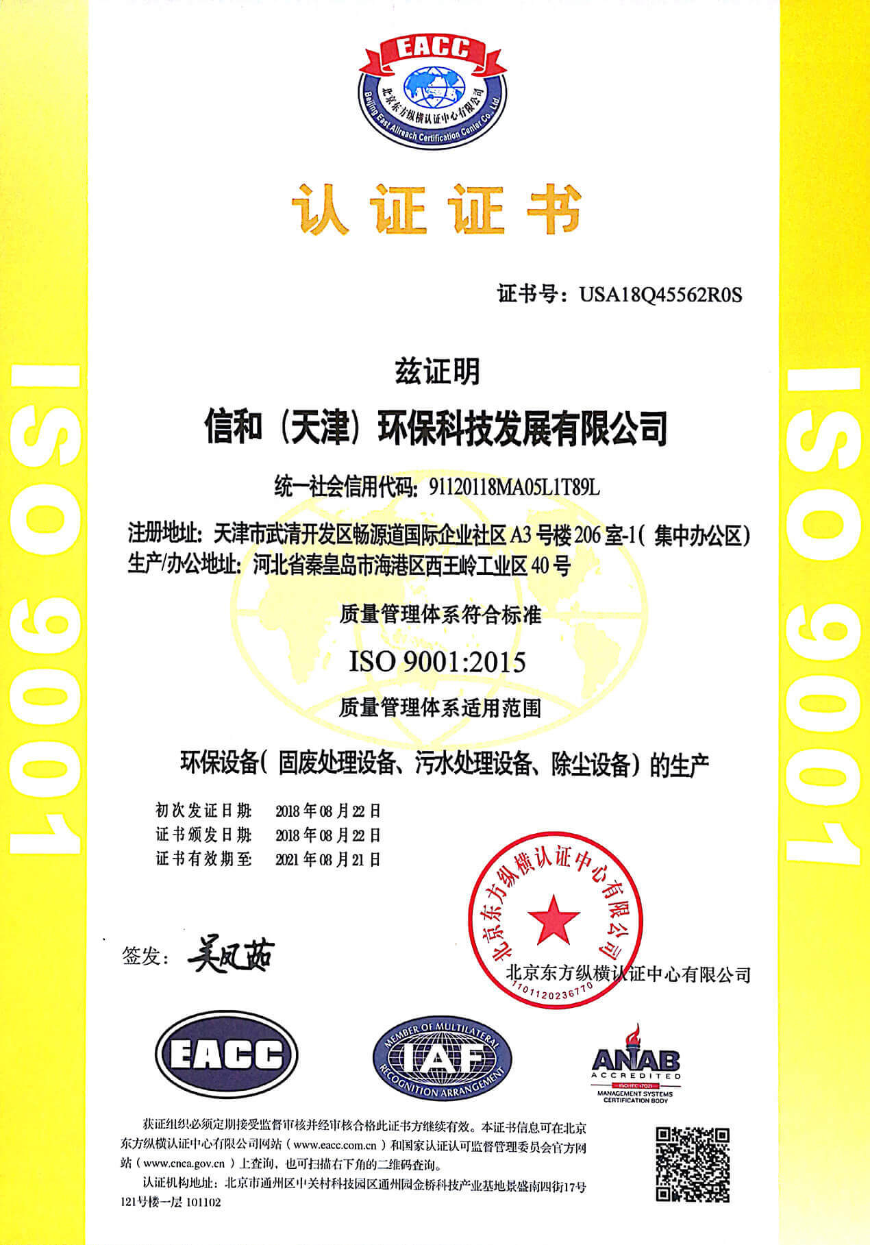 以“專業(yè)、誠信、創(chuàng)新、環(huán)保”為核心理念。專業(yè)從事環(huán)保設(shè)備研發(fā)的生產(chǎn)型高新企業(yè),為客戶提供專業(yè)的環(huán)保設(shè)備。擁有《中華人民共和國進(jìn)出口資格證》和《中國環(huán)境保護(hù)產(chǎn)品認(rèn)證證書》。產(chǎn)品通過ISO9001質(zhì)量管理體系認(rèn)證、ISO4110環(huán)境管理體系認(rèn)證、ISO18001職業(yè)健康管理體系認(rèn)證。